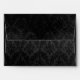 This envelope features faded, script writing of a love poem on the black lining. The outside is a luxurious, textured black damask design. The design is lightly distressed for a charmingly vintage look throughout.