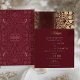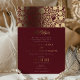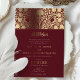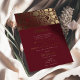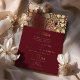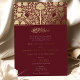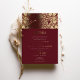 Celebrate your wedding with this luxurious burgundy and gold Islamic wedding invitation. This invitation features intricate floral patterns and elegant gold foil accents against a rich burgundy background, creating a sophisticated and opulent design. The traditional Islamic motifs and script blend seamlessly with modern elements, reflecting both cultural heritage and contemporary style. Printed on high-quality paper, this invitation is fully customisable to include your wedding details, ensuring a memorable impression on your guests. Perfect for a formal and elegant wedding, this invitation will set the tone for a truly special event.