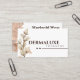 Showcase your beauty wellness brand with this elegant botanical business card. The front features the Dermaluxe Therapy logo framed by soft beige marble tones and delicate leaf illustrations for a natural yet luxurious feel. The back provides your name, title, contact details, website, and social media icons, accented by earthy floral artwork. Perfect for beauty therapists, spa owners, skincare specialists, or holistic wellness professionals who want a refined and professional image. Fully customisable with your own name, logo, and brand colours.