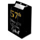 This sophisticated, elegant, and luxurious birthday-themed gift bag design features a large ordinal number “57th” having a faux/imitation gold-inspired gradient pattern, plus the birthday greeting message “Happy 57th Birthday,” and an editable recipient name in a script-style font. It also has a black-coloured background. A birthday themed gift-bag like this might be a fun way to wrap a gift or present being given to somebody who is celebrating their 57th birthday. [~Z0000514]
