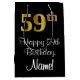 This elegant, stylish, and sophisticated birthday themed giftbag design features a large ordinal number “59th” having a faux/imitation gold-inspired gradient pattern, along with the birthday greeting message “Happy 59th Birthday,” and a custom recipient name in a script-style font. It also has a black-coloured background. A sophisticated birthday themed gift bag like this might be a fun way to wrap a gift or present being given to somebody who is celebrating their 59th birthday. [~Z0000514]