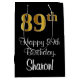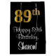 This elegant, sophisticated, and stylish birthday themed gift bag design features a large ordinal number “89th” having an imitation/faux gold-inspired appearance, along with the birthday greeting message “Happy 89th Birthday,” and a personalised recipient name in a script-style font. The background is coloured black. A luxurious birthday themed giftbag like this might be a fun way to wrap a gift or present being given to celebrate somebody’s 89th birthday. [~Z0000514]