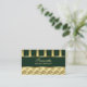 An intricate unique business card consisting of geometrically different borders, that is, one in emerald green and gold stripes, the other in gold. Edit the name at the front and back, and the job title and address all at the back of the card. To do this select '' personalise this template''.