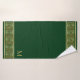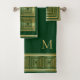 Luxurious and elegant emerald green and gold bath towel set with a customisable monogram / initial.
