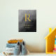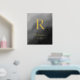 With touches of luxury, this gold or silver real foil art print features the family's or individual's initial, name, and year began or birthed. The background is in a textured black and white ombre style that includes different shades of grey to black. This design was created to add to your luxury or modern look home decor.