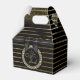 An elegant ending touch for gifts with thankful action on any occasion such as this luxurious box with crystals and ornamental ribbons and golden stripes with elegant black background.