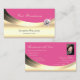 Luxurious and elegant business card design featuring light gold colours decoration with a glamourous sparkling diamond and pink background.
