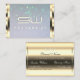 Make a lasting impression with this elegant and quality business card template featuring a glamourous gold effect and an outstanding faux 3D letters print with pearl glitters on a light blue background.