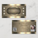 Luxurious golden business card design featuring an oval shape, gold borders and shimmery diamonds.