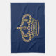Luxurious gold crown navy kitchen towel.