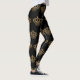 Luxurious gold crown on black pattern leggings.