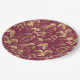 Luxurious Gold Ginkgo Leaves on Deep Burgundy (3) Paper Plate