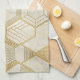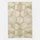 A sophisticated seamless geometric pattern kitchen towel featuring a grid of interlocking hexagons outlined in metallic gold. Each hexagon contains elegant linework and subtle geometric details, set against a softly textured cream and beige marble background. The blend of warm neutrals and gold accents gives this design a modern, refined, and luxurious feel.
