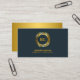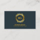 Luxurious Gold Laurel Leaves Crest on Rustic Blue Business Card