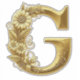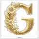 Ornate gold letter G entwined with delicate daisies and curling vines, creating a luxurious emblem suitable for monograms, branding, wedding decor, and high-end promotions.
