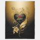 This breathtaking design captures the essence of love and romance with an exquisite golden heart set against a deep black background. Delicate gold filigree swirls extend gracefully, framing the composition with elegance and charm. A single red heart sits at the center, radiating warmth and passion, while a beautifully detailed golden rose blooms below, symbolizing timeless love and devotion. The contrast between the rich gold and the dark background creates a bold and luxurious esthetic, making this piece perfect for Valentine's Day, anniversaries, weddings, or simply celebrating love. Ideal for home decor, accessories, and gifts, this sophisticated design brings elegance and romance to any space.