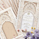 Invite your guests to a truly elegant wedding with this luxurious Islamic-inspired wedding invitation. Featuring intricate floral and geometric patterns, this invitation is adorned with opulent gold foil accents that highlight the detailed design. The front showcases an elaborate archway motif in shades of ivory, beige, and soft gold, creating a sophisticated and timeless look. The back continues the theme with a seamless floral design and a monogram, making it perfect for a refined and memorable wedding. Ideal for couples who appreciate the beauty of Islamic art and architecture, this invitation sets the tone for a grand celebration.