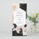 Elegant Chanel-inspired wedding invitation featuring blush pink simulated bejeweled flowers and foliage with chic black accents. Creating a blend of sophistication, luxury and romance.