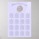 This modern seating chart features an original gold ring design surrounded by wispy white brush strokes overlaid on a lovely lilac background. Add your details in the customise menu. This is part of a luxurious collection with a matching invitation, table card number, place card and other wedding essentials.