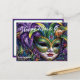 💚💜💛 This enchanting card captures the essence of Mardi Gras with a beautifully decorated mask that epitomises the artistry and creativity of this festive tradition. The mask is a captivating blend of lush greens, majestic purples, and radiant yellows, creating a display of opulence and extravagance. Delicate swirls and feathers adorn the mask with meticulous craftsmanship, adding depth and texture to the overall design.
