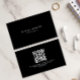 Luxurious, refined business card template with customizable QR code and modern sans serif font. The black and white business card design is on-trend, classic, and sure to make your business stand out. This elegant business card template is easy to customize by adding your logo and business information. Use this business card template to easily direct clients to your website.