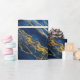 Luxurious Navy Blue & Gold Leaf Marble Wrapping Paper