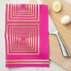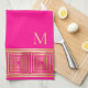 Luxurious and elegant neon hot pink, gold kitchen towel with a customisable monogram / initial.