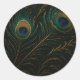 Luxurious Peacock Feathers Golden Teal Pattern Classic Round Sticker