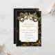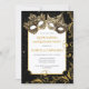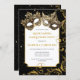 Celebrate your special day with an invitation that exudes elegance and mystery. This customisable quinceañera masquerade party invitation features two stunning gold masks set against a starry background, creating a sense of enchantment and allure. The right side of the design is adorned with beautiful faux gold glitter swirls, adding a touch of sparkle and sophistication. Your personalised text is elegantly displayed within a refined text banner, making this invitation a perfect blend of style and grace. Make your quinceañera unforgettable with this luxurious invitation that promises to captivate your guests.