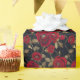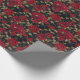 Luxurious Red Rose & Gold Leaf Pattern on Black Wrapping Paper