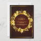 Luxurious invitation with a dark red background and a gold frame engraved with flowers and laurel leaves. This elegant, regal wedding invitation template is perfect for inviting guests. Simply enter your event details into this template to create a one-of-a-kind invitation.