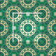 Seamless decorative geometric pattern featuring green, beige and bright yellow geometric shapes.