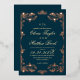 Modern stylish wedding card teal with a gold foil floral and modern calligraphy. Classy and elegant, simple and modern invitation.