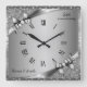 Luxury 25th Anniversary Metallic Silver & Diamond Square Wall Clock.