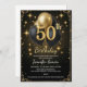 Luxury 50th Birthday Black Gold Balloon Glitter Invitation