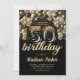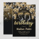 Luxury 50th Birthday Black Gold Balloon Glitter Invitation