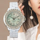 Luxury Aqua Marbled Rhinestone Watch for Women - Personalised Bridal, Wedding, & Anniversary Gift.