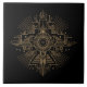 This striking ceramic tile features an intricate geometric pattern inspired by the lavish elegance of the Art Deco era. The design combines precise symmetry and bold linear elements in metallic gold tones centered on a sleek black background, creating a look of refined luxury. Perfect as a statement accent or part of a larger decorative wall arrangement, this tile brings sophistication and timeless glamour to modern interiors. Search ID1196 to see all of the designs available in this Art Deco set. Note: design contains generative content.