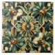 Introduce a touch of luxury to your kitchen or bathroom with this vintage-inspired Art Deco ceramic tile. This 6x6 tile features an ornate, gold, and green fan print with intricate background detailing. The stunning design of this ceramic tile is sure to elevate any space. Consider using this tile as a border around a fireplace, framed in Art Deco style. Customers are also creatively using this tile to update tabletops or create seamless tile patterns to frame and display on walls. The creative possibilities are truly limitless. A 6x6 tile is shown, and a smaller version is also available. (AI design by Susang6)