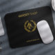 Barber shop mouse pad with faux gold scissors logo and barber script on a solid black elegant leather look background