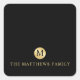Luxury Black and Gold Personalised Monogram Square Sticker