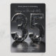 Set the tone for an unforgettable evening with this glamorous 35th birthday design. The layout features oversized, faux 3D typography for the number "35," rendered in a stunning black glitter effect with metallic silver chrome edging. The dark background contrasts beautifully with the elegant white script, creating a sophisticated, high-end look perfect for evening parties, dinners, or cocktail events.