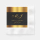 This luxury wedding napkin features a faux gold calligraphy script on a black background bordered with shiny gold. Personalise the monogram, names, and wedding date. Best wishes for your wedding and marriage. Designed by Susan Coffey.