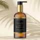 This elegant product label for cosmetic bottles features a black background with a faux gold foil border. This label contains space for your product name, business name, product weight, ingredients, instructions, social media, and business address. This label measures 4.5 inches by 2.7 inches and is available in glossy or matte finish.