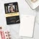 Modern classy typography professional legal certified notary loan signing agent custom personalised black and gold ID badge with elegant black leather look (PRINTED) background and calligraphy script with pen logo. +++++++++++ Easy to personalise with your photo, your details, and bar code on both sides.