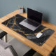 Elevate your workspace with this luxury black marble desk mat, featuring polished surface and striking gold-white veining. Perfect for modern interiors, it blends elegance with functionality.