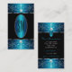 Make a lasting impression with this luxurious and elegant business card design featuring fine filigree ornate ornaments with diamonds and sparkling stars. The borders are shimmery teal and blue with silver decor on a black background.