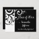 Classy and elegant black and white swirl graduation announcement, graduation party invitation or graduation invitation. Perfect for the girl with a refined sense of style. Leafy scroll design with black background and white fancy script lettering. Customize online!