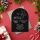 Elegant black and white wedding card featuring a minimalist line art illustration and refined typography. The bold black background with white text creates a sophisticated and timeless look, ideal for luxury, black-tie, or modern weddings. Romantic calligraphy for the first names paired with classic serif fonts for the last names adds both charm and readability. Fully customisable — personalise names, date, time, and venue for your special celebration. Perfect for couples seeking a chic and artistic stationery style.
