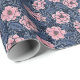 Luxury Blue and Pink Camellia Yours Truly Floral Wrapping Paper